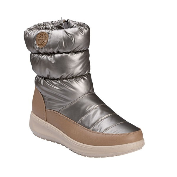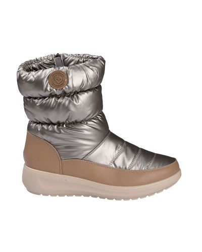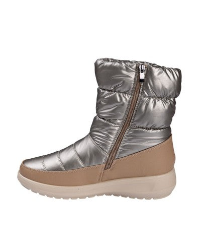Botín acolchado que combina calidez y estilo sin renunciar a la practicidad. Su tejido impermeable con acabado brillante repele el agua mientras mantiene tus pies protegidos del frío, mientras que el forro suave interior envuelve cada paso con confort. La plantilla acolchada y extraíble garantiza higiene y comodidad total, y la cremallera lateral te permite calzarte en segundos. Con una cuña media de 4 cm que estiliza la silueta y una suela antideslizante y flexible, este botín Amarpies es tu aliado perfecto para días frescos. Diseñado en España con materiales de primera calidad.