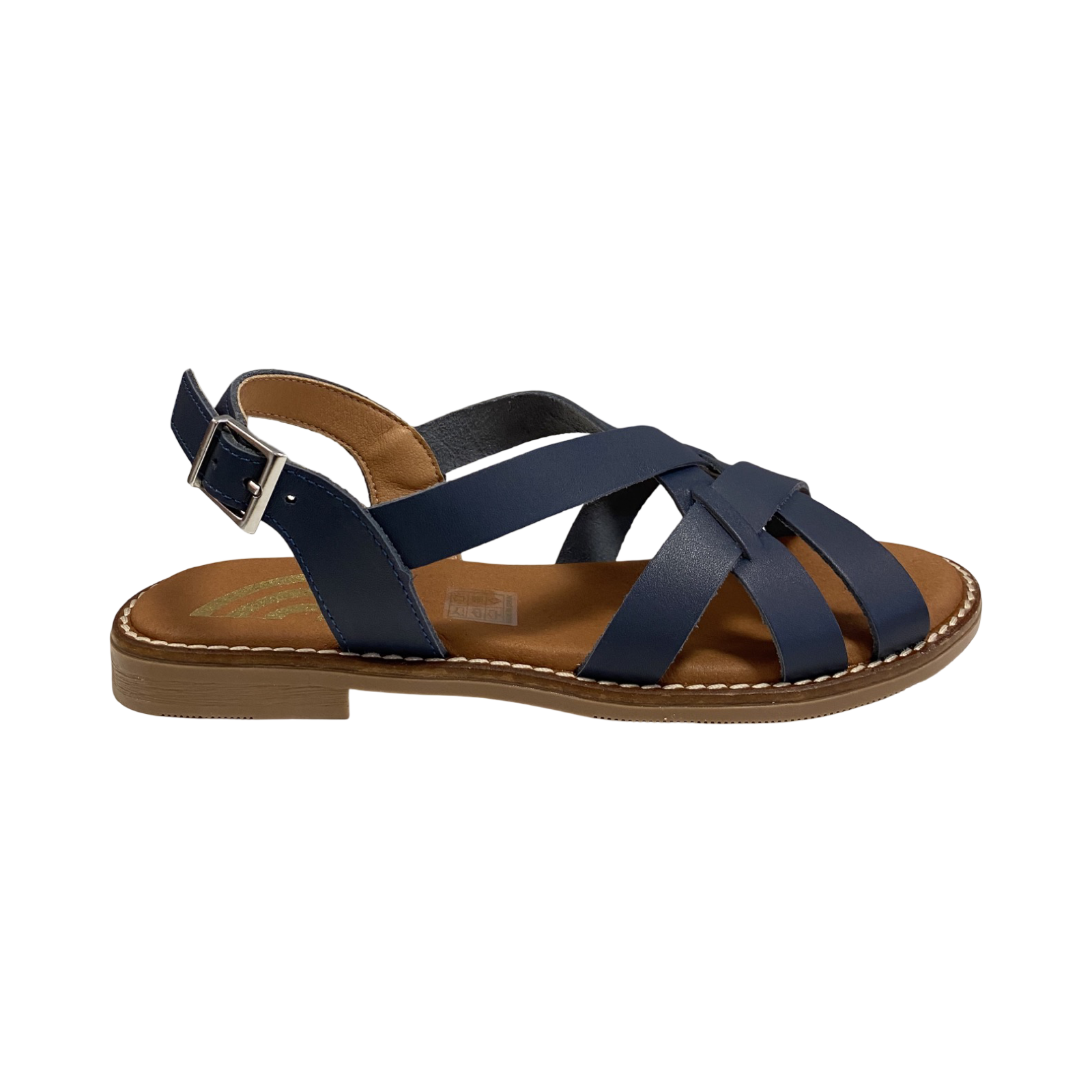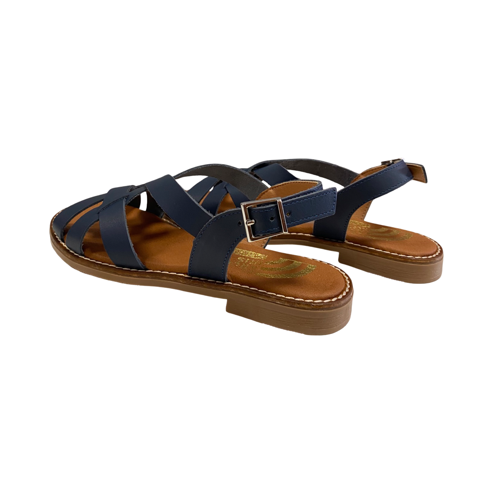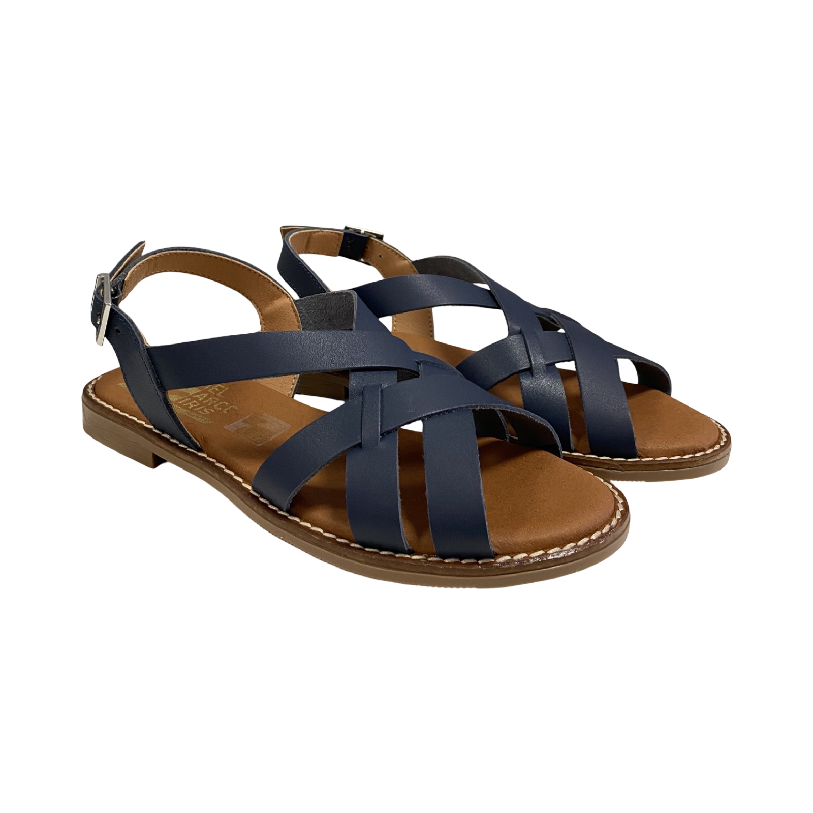 Sandalia plana de mujer fabricada en piel de color marino. Las sandalias estilo romana son tendencia esta temporada, por lo que el modelo Enya no pasará desapercibido, si buscas un básico para tu fondo de armario. Además, su planta de microfibra transpirable confort gel te dará esa comodidad que necesitas para tus pies en el día a día.