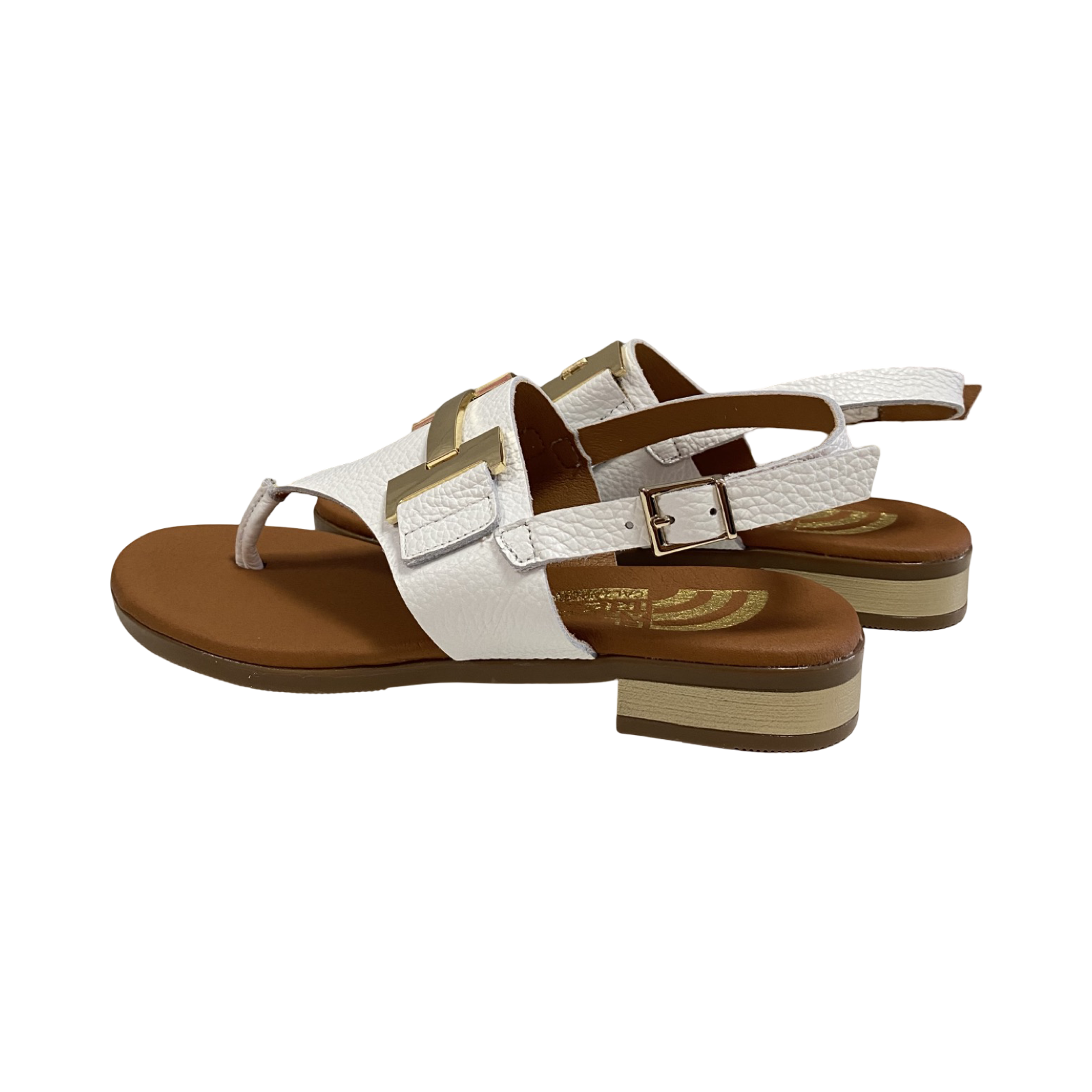 ¡Pisa con estilo! Sandalia mujer CAI 5585 en blanco con toque dorado. Cómoda, plana y con una plantilla de gel, perfecta para tus actividades diarias. Hecha en España, con la calidad que mereces.