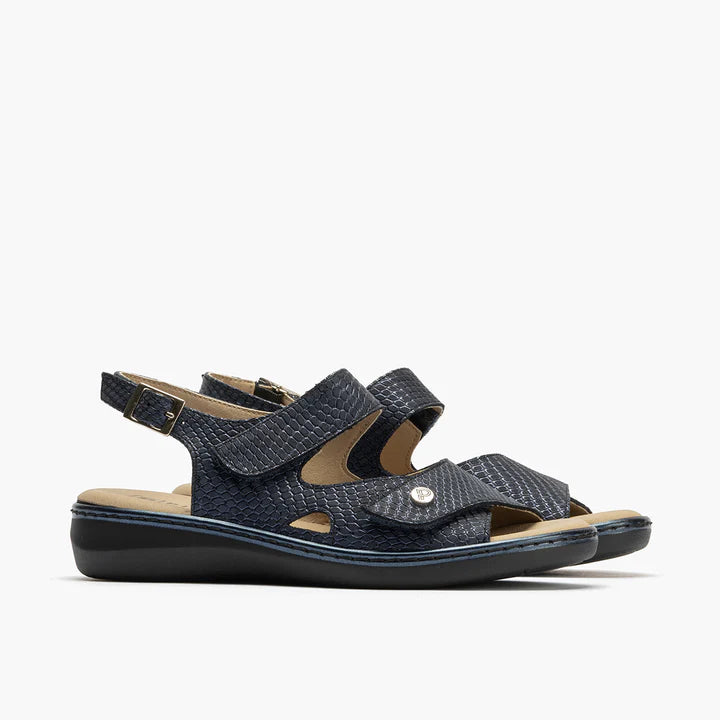 Ideal para la temporada primavera - verano 2025. Confeccionada en Piel grabada fantasía para un toque elegante y diferente. El cierre con velcro facilita el ajuste perfecto al pie. Incluye plantilla técnica textil para extra-confort y sensación térmica óptima esta primavera/verano. compuesta por fibras transpirables para máximo confort.
