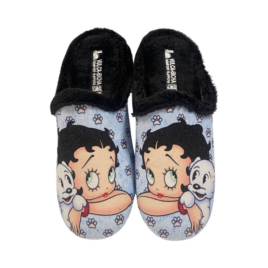 ¡Luce los pies con la ZAPATILLA MUJER CASA 1363! Esta zapatilla de la marca Vulcabicha, fabricada en España, con una plantilla extraíble de gel, será tu mejor aliada para alegrar tus días caseros. ¡Te encantará lucir la divertida Betty Boop en tus pies!
